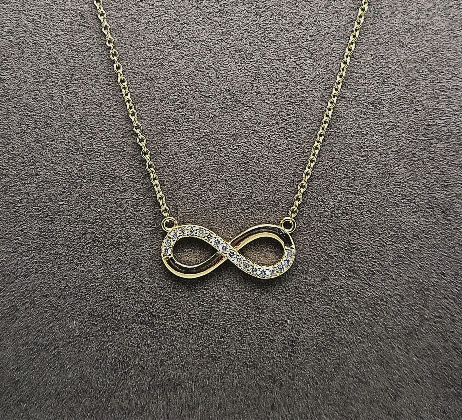 9 Ct yellow gold Infinity pendant with 10 synthetic Diamonds .