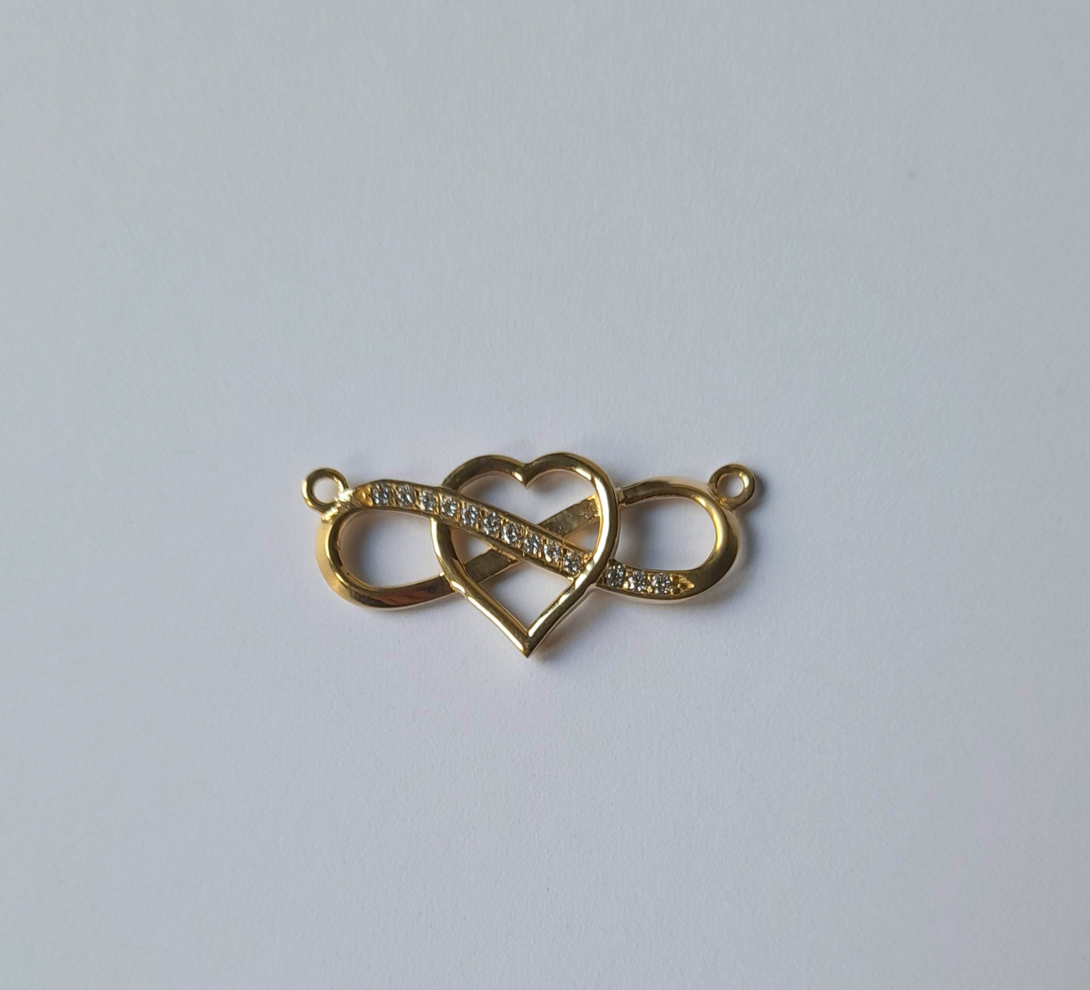 9 Ct yellow gold Infinity and heart pendant with 13 synthetic Diamonds.